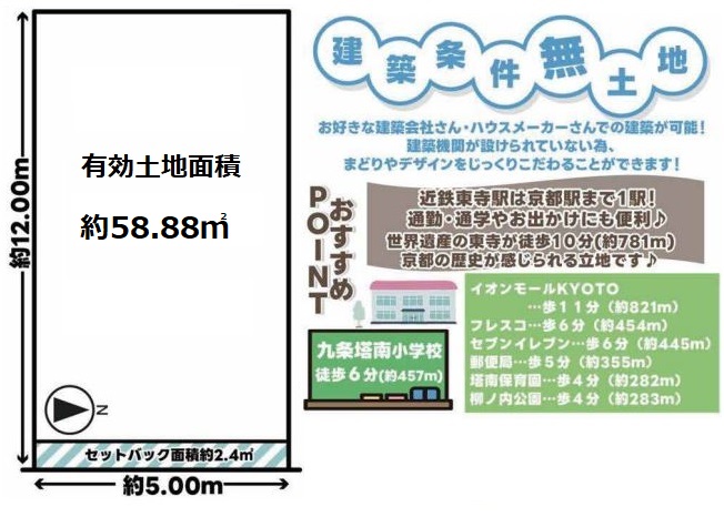 近鉄京都線「十条」駅まで徒歩7分!